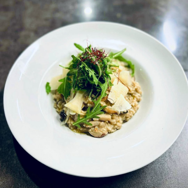9.20€S kuracím mäsom, šalotkou, biele víno, šafrán, parmezán (300g)